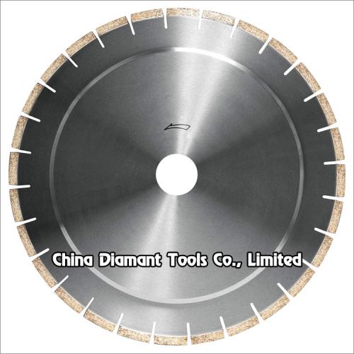This diamond horizontal cutting blade is used on marble block cutting machines, it cut the slabs edge from the block bottom after the vertical cutting of slabs.