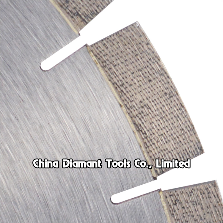 Diamond saw blades with matrix segments for cutting slab edge of granite, sandstone, various hard stones with quartz, fast and smooth cutting with long life.