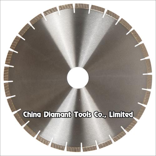 Diamond saw blades with diagonal turbo segments for cutting slab edge of granite, sandstone, various hard stones with quartz, fast and smooth cutting with long life.