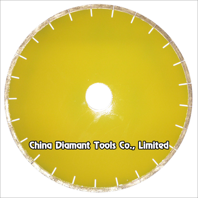 Diamond saw blades with 8mm or 10mm height fanlike shape segments for slab edge cutting of marble, limestone, slate, various soft stones without quartz, cutting slabs to tiles or as per order request.
